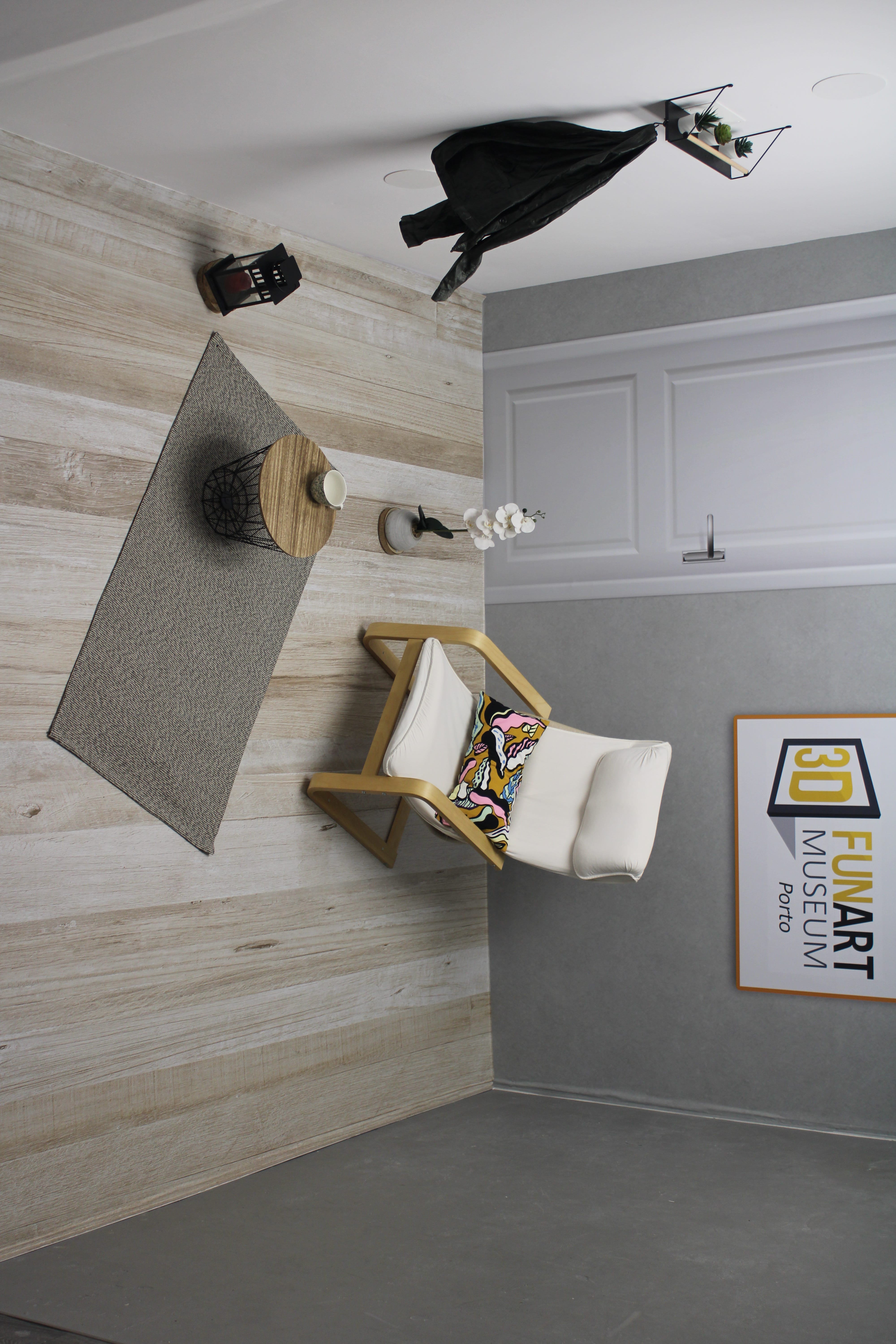 Quarto de Cabeça Para Baixo: «venha conhecer o nosso quarto ao contrário, o lugar onde a gravidade desafia a imaginação»;